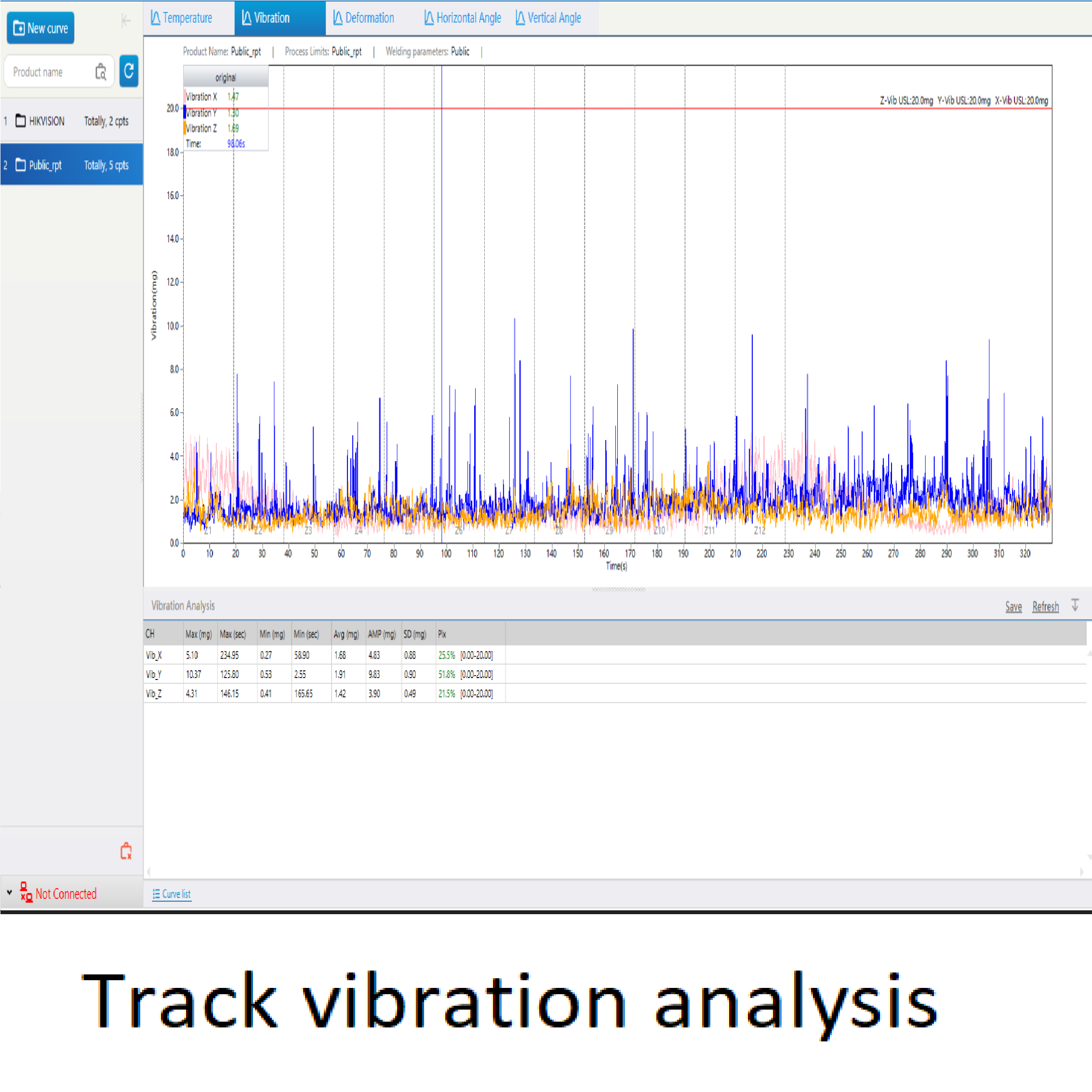 Capture vibrations and analyze production impact