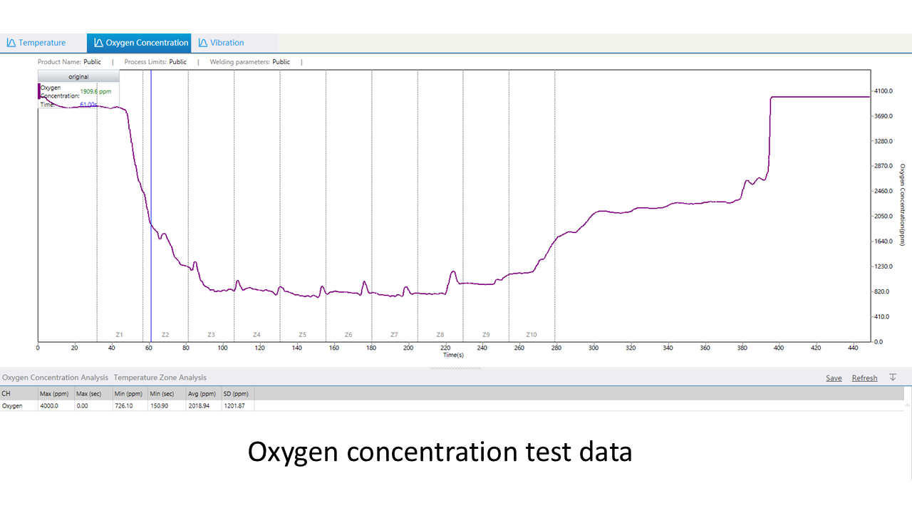 The oxygen concentration and temperature curves of multiple temperature zones are fully displayed, supporting process parameter tuning and improving equipment OEE